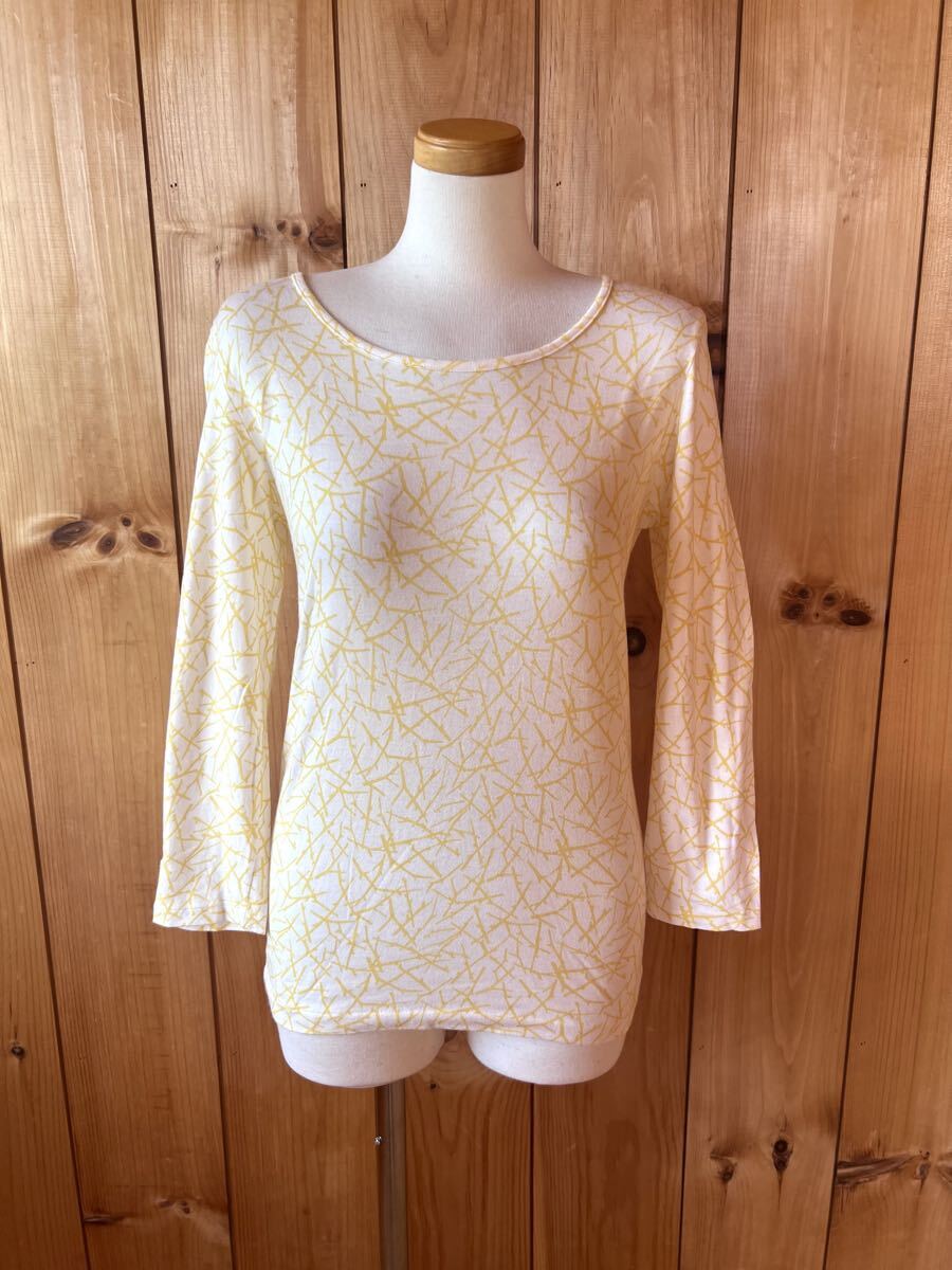 > Sally Scott/サリースコット/トップス/カットソー/8〜9分袖/ロンT/M/コットン×レーヨン/ホワイト×イエロー/日本製/良品美品