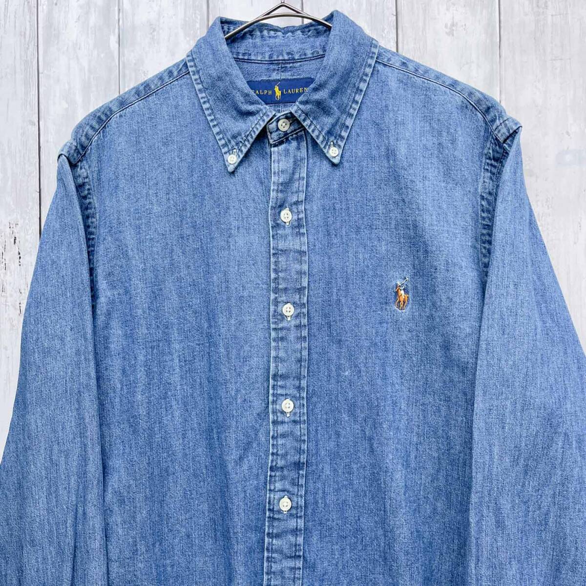 > ラルフローレン Ralph Lauren 長袖シャツ メンズ ワンポイント デニムシャツ コットン100% Mサイズ 6-616
