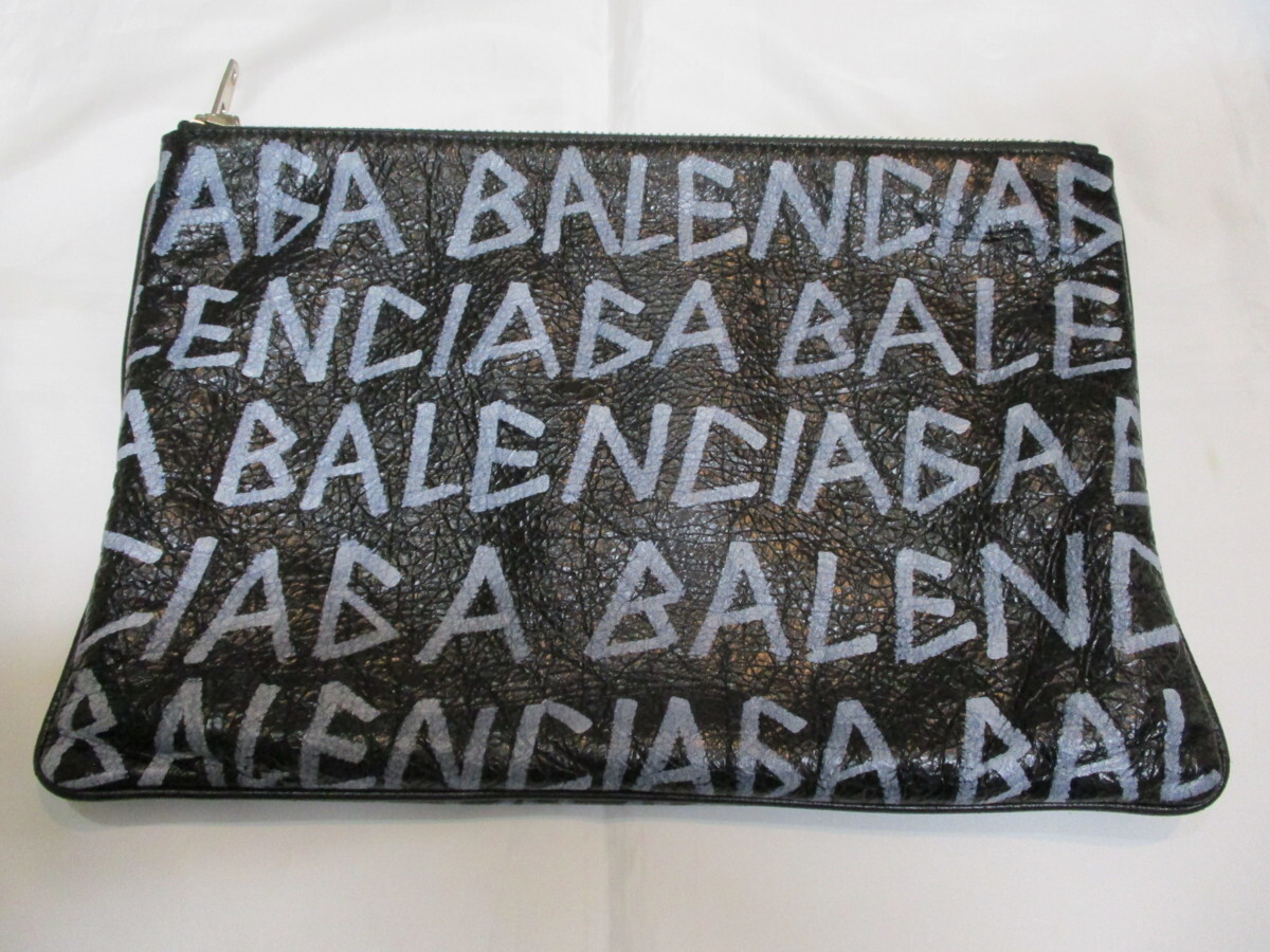 - 【美品】バレンシアガ BALENCIAGA キャリークリップ ロゴ クラッチバッグ レザー ブラック 494040