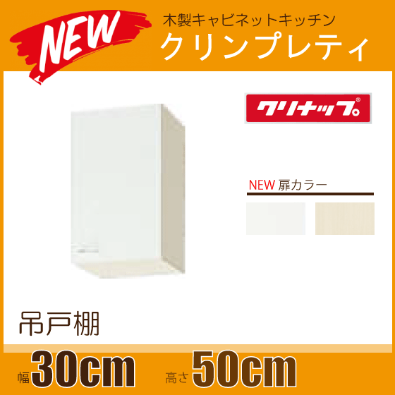 - 吊戸棚 クリンプレティ 幅:30cm 高さ:50cm WGTS-30,WG4V-30 幅:300mm 高さ:500mm クリナップ ★