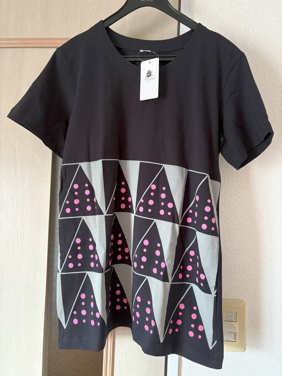 > ★未使用 タグ付き 京都 くろちく Tシャツ ぼたん雪 kurofune 半袖 黒 ブラック ストレッチ レディース Lサイズ