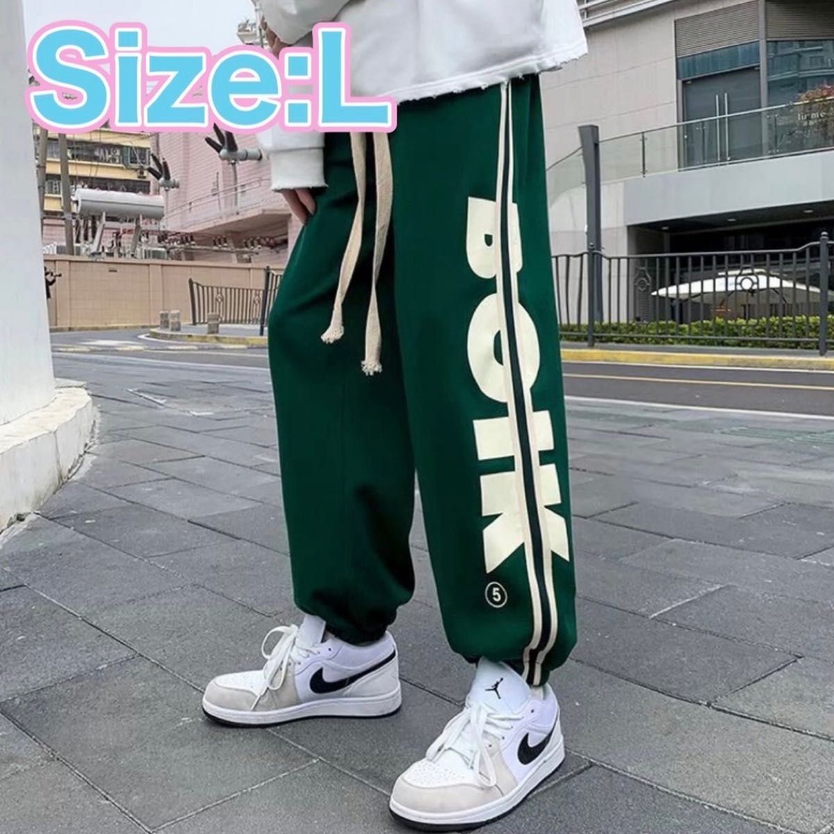 - ルーズフィットパンツ スウェットパンツ ジョガーパンツ サイドロゴ メンズ レディース 男女兼用 スウェット グリーン L