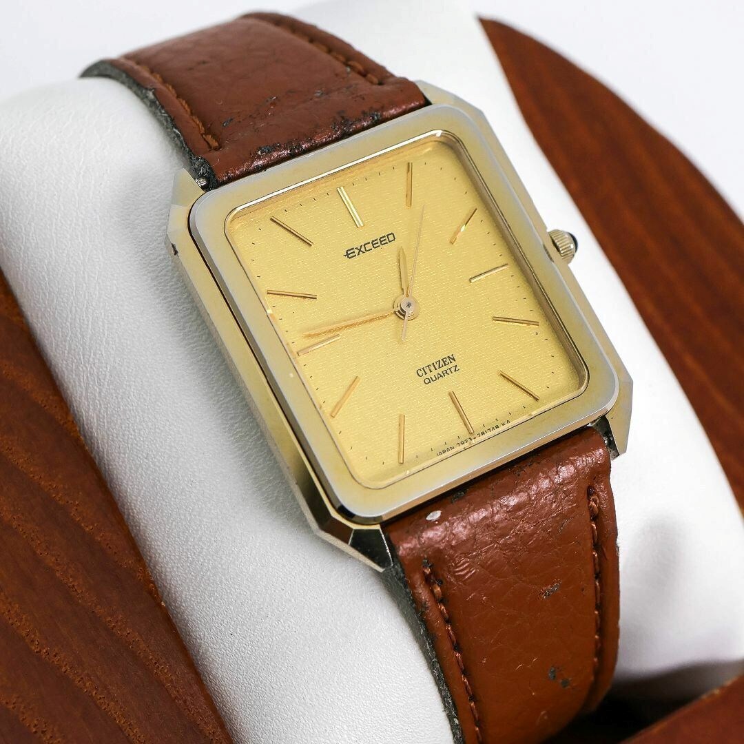 - 稼働 CITIZEN EXCEED 腕時計 スクエア メンズ レザー 1135