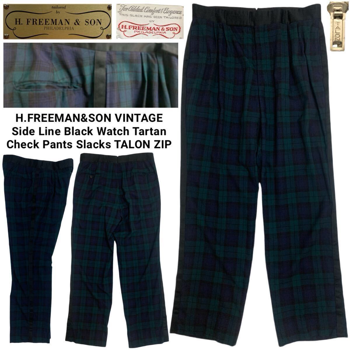 > H.FREEMAN&SON VINTAGE ヴィンテージ サイドライン ブラックウォッチ柄 ツータック チェックパンツ スラックス TALON ZIP (XL) アーカイブ