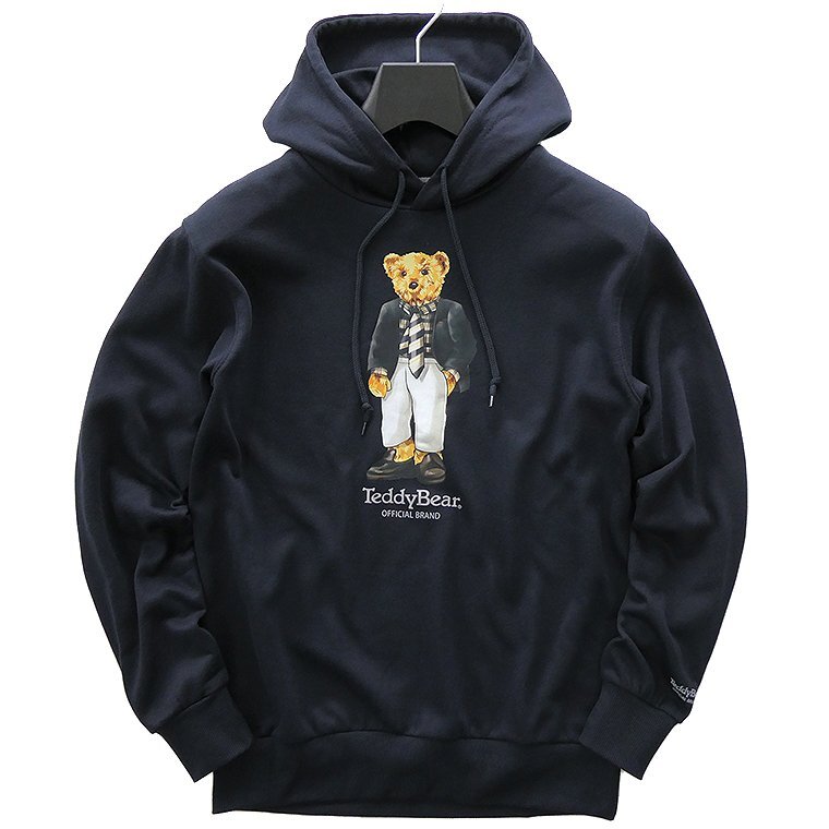 - 新品 テディベア 裏毛 プリント スウェット パーカー LL 紺【td1953048_79_LL】 Teddy Bear スエット プルオーバー フード トレーナー XL