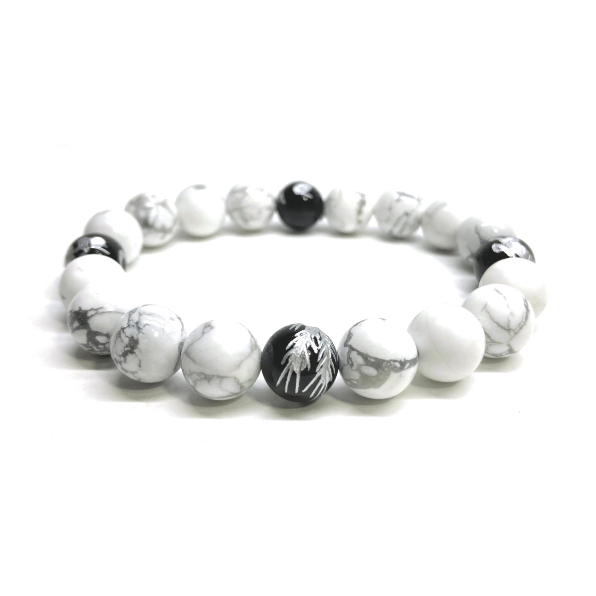 - 10mm 四神獣銀彫オニキス×ハウライト パワーストーン ブレスレット天然石 運気上昇 開運 金運 恋愛運 青龍 白虎 玄武 朱雀 ☆
