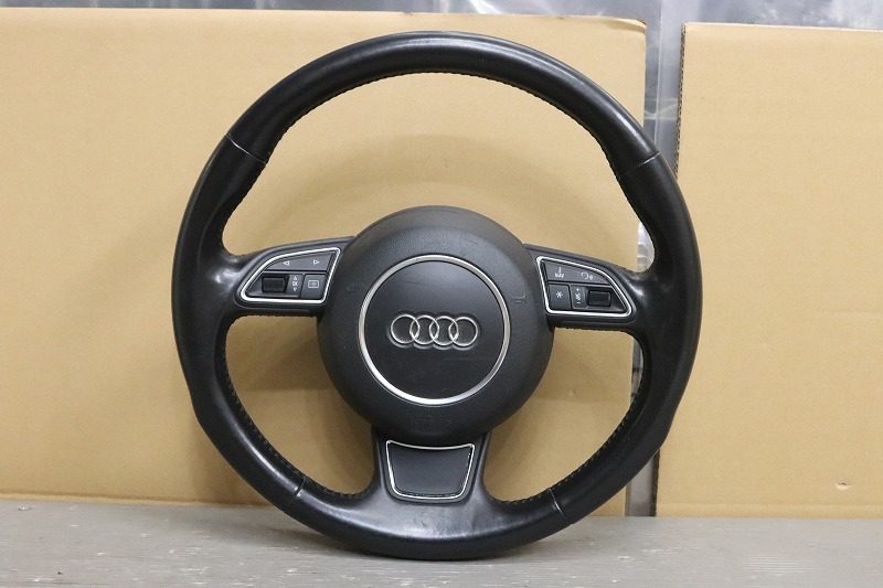> アウディ A1 右H 前期 (8X) 純正 ステアリングホイール 本革 レザー スイッチ ホーンパット Audi 破損無 動作保証 ハンドル p049066