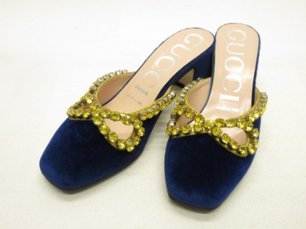 - グッチ GUCCI ★ ビジューリボンモチーフ ベロアミュール サンダル◆サイズ36(23.5cm位)