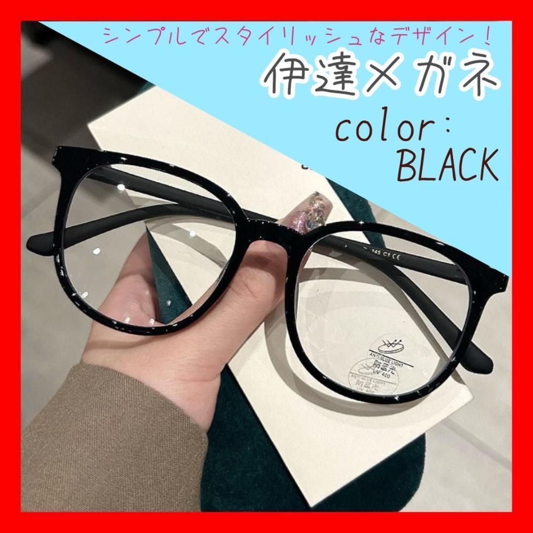 - ブラック 伊達メガネ 黒縁 眼鏡 おしゃれ 小物 ファッション 韓国 シンプル