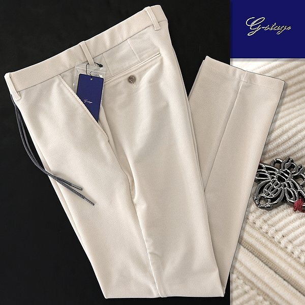 - 新品 ジーステージ 秋冬 トリコット ニット コーデュロイ パンツ 48(L) 白系 【4-20507_2_48】 G-stage 洗える ストレッチ テーパード