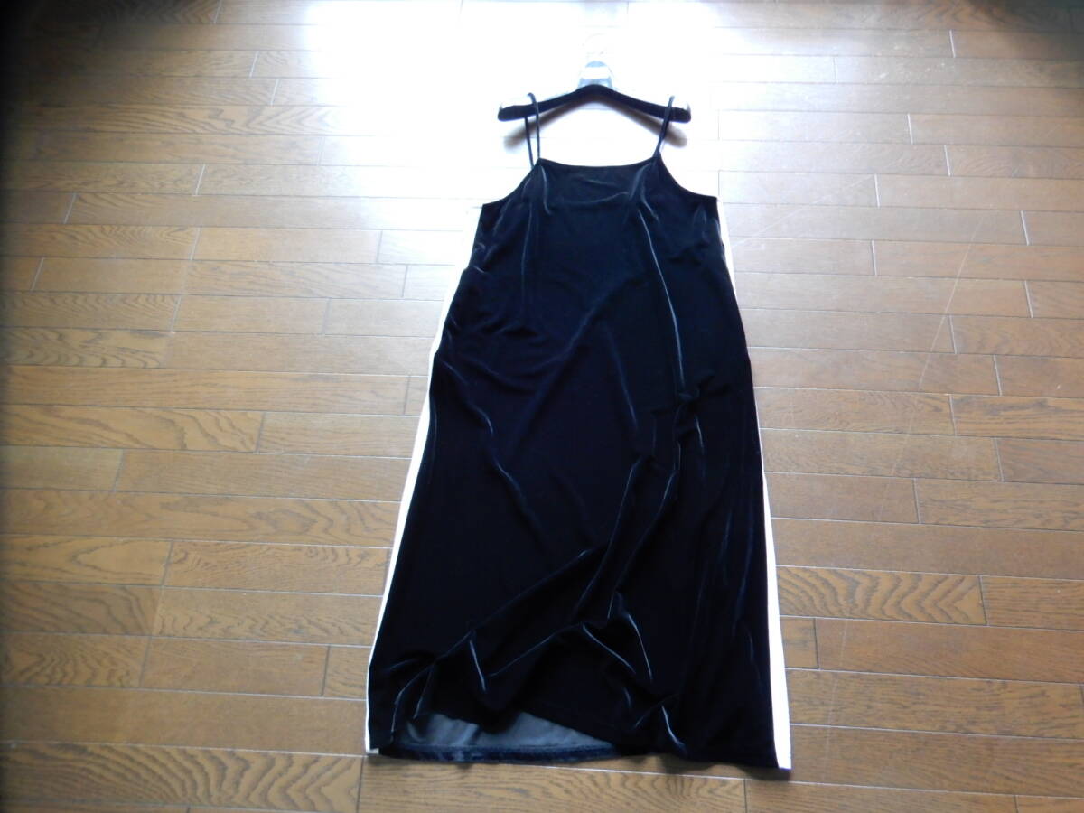 - 【niko and…/ニコアンド】Fsize 大人可愛いベロアキャミソールワンピース 黒 白ライン