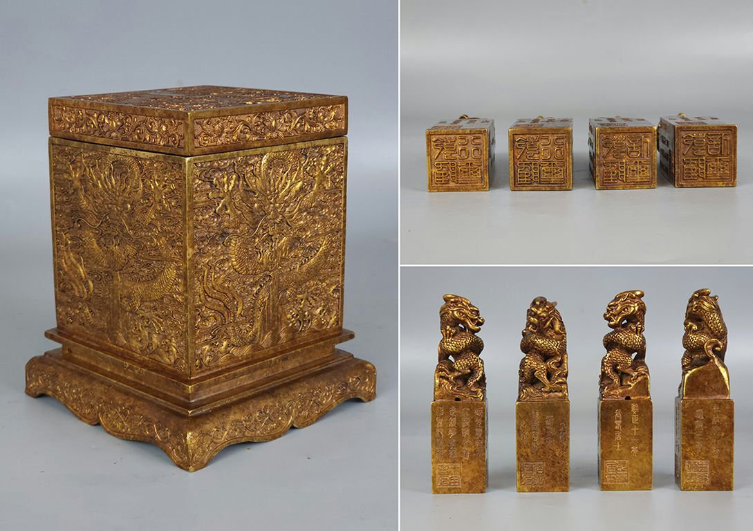 - ◆羽彰・古美術◆Y722清時代 銅塗金印 細密細工★古置物★古賞物★古擺件★蒐集家放出★唐物