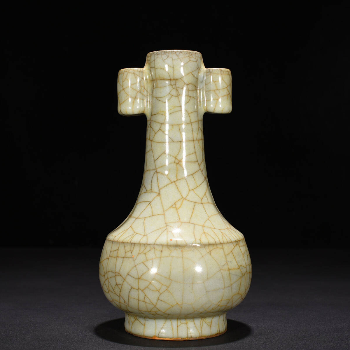 - 宋時代 官窯 月白釉貫耳瓶 管耳瓶 唐物 箱付き 陶磁器 中国美術 古美術 置物 骨董品 H40