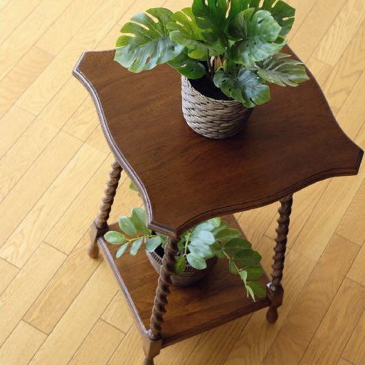 - 花台 木製 フラワースタンド 玄関 アンティーク 電話台 おしゃれ オーク花台ネジリ脚 スクエア 送料無料(一部地域除く) diz4803