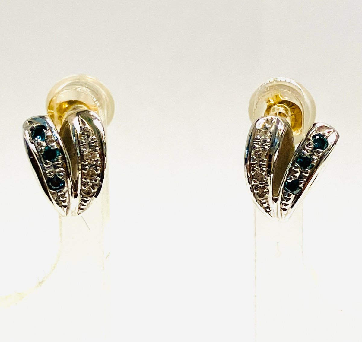 - K18WG ホワイトゴールド PINKY&DIANNE ピンキー&ダイアン 4Pダイヤ ブルーダイヤ3P 0.05ct/0.05ct スタッドピアス qoj.YPB07