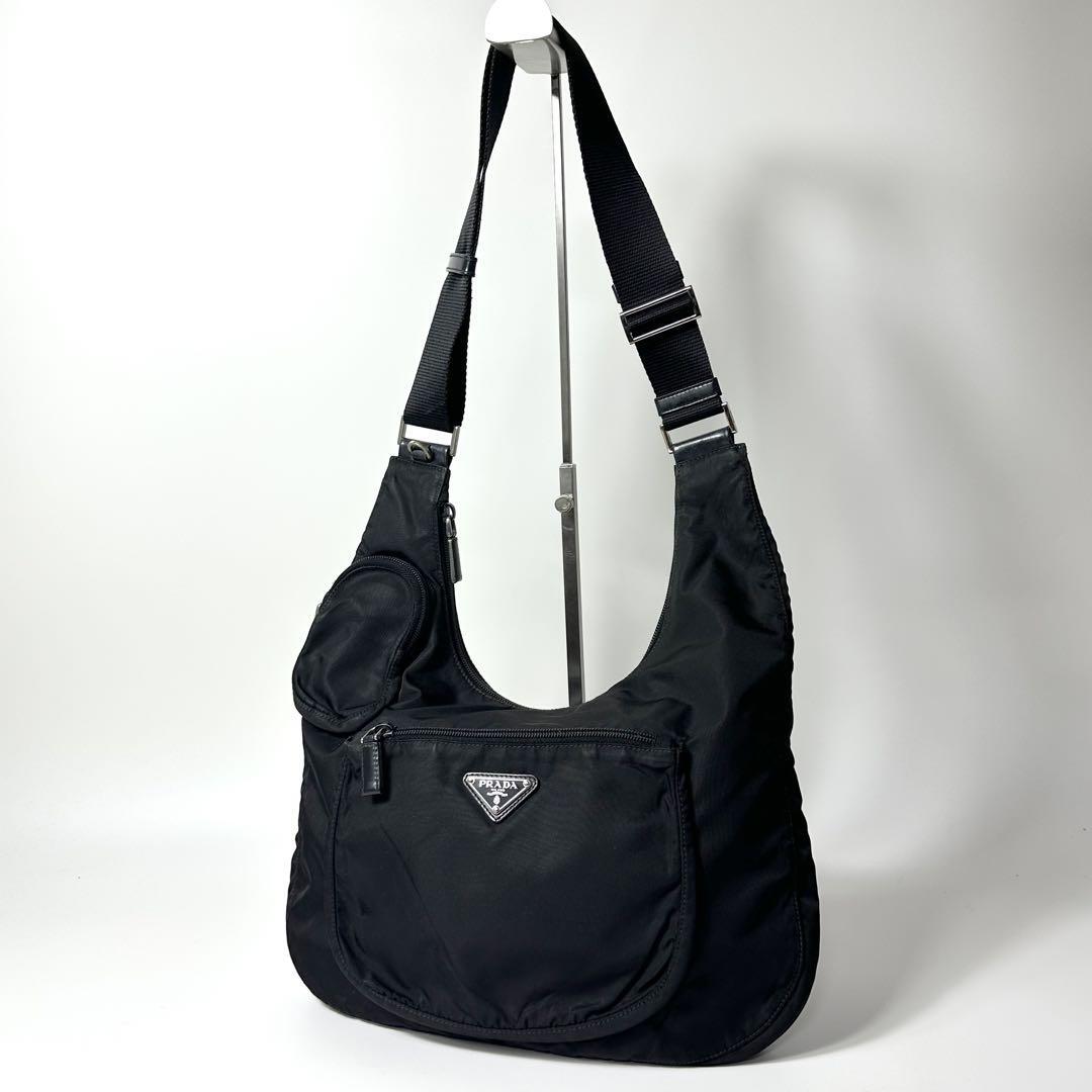 > PRADA ショルダーバッグ 立体ポケット 黒 3角ロゴ