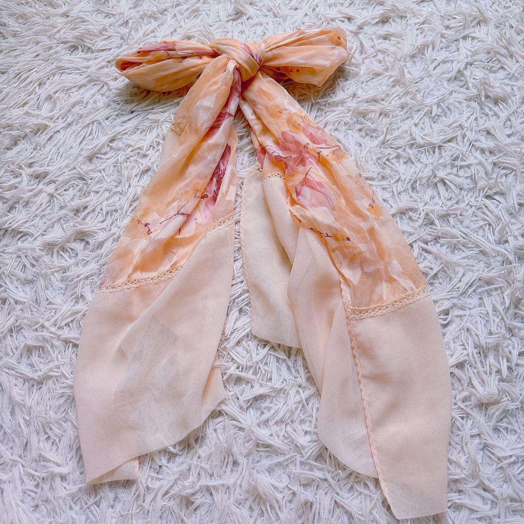 > シルク silk ストール 花柄 グラデーション ショール 薄手 フラワー 美品 シルク100% スカーフ ショール 高級感 総柄 レディース