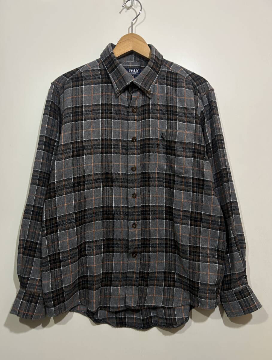 > ★ MR.VAN 長袖 チェックシャツ ボタンダウンシャツ ネルシャツ ライトフランネルシャツ L グレー系 レーヨン混紡 ミスターヴァン 刺繍入り