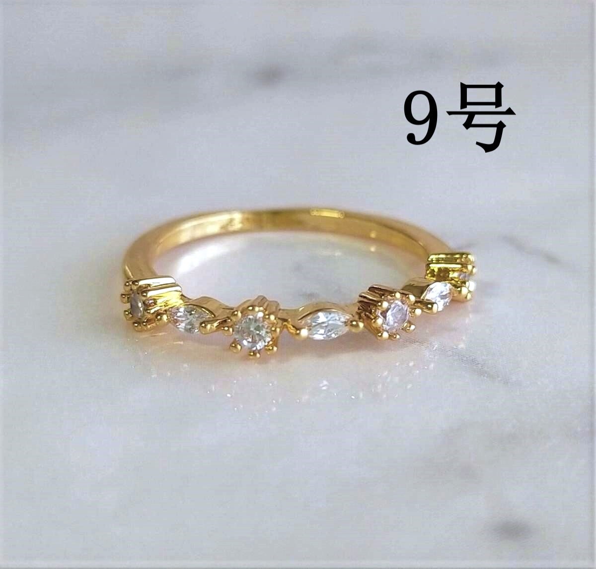 - キラキラ リング ゴールド 9号 細い 華奢 おしゃれ 指輪 レディース かわいい