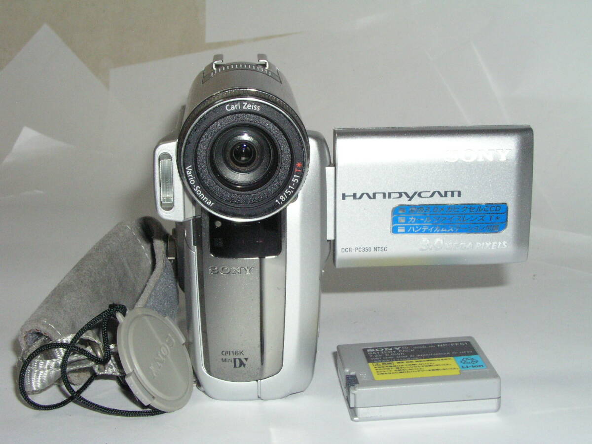 > 8356★ SONY デジタルビデオカメラレコーダー DCR-PC350、MiniDVテープ式ビデオカメラ + 純正電池 NP-FF51 ★81