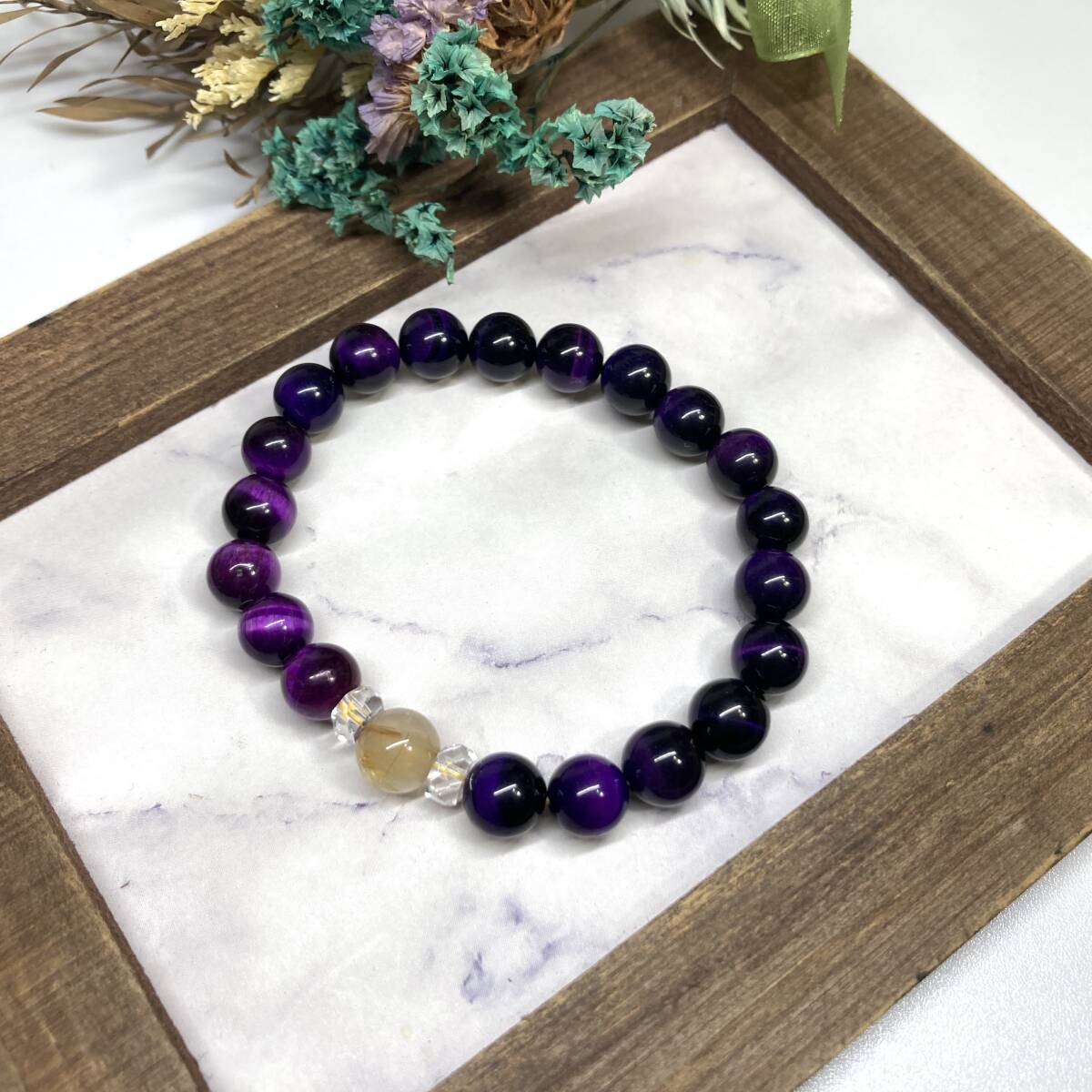 > パープルタイガーアイ&ルチルクォーツブレスレット パワーストーン レディース 女性 金運 仕事運 開運 数珠ブレス お守り
