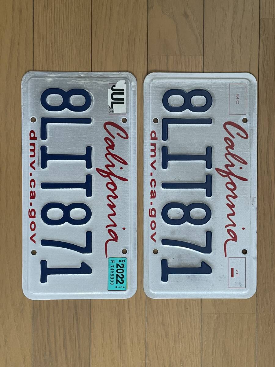 - カリフォルニア ライセンスプレート 8LIT871 2枚セット USDM 世田谷ベース 米国トヨタ シボレー フォード ロサンゼルス ナンバープレート_