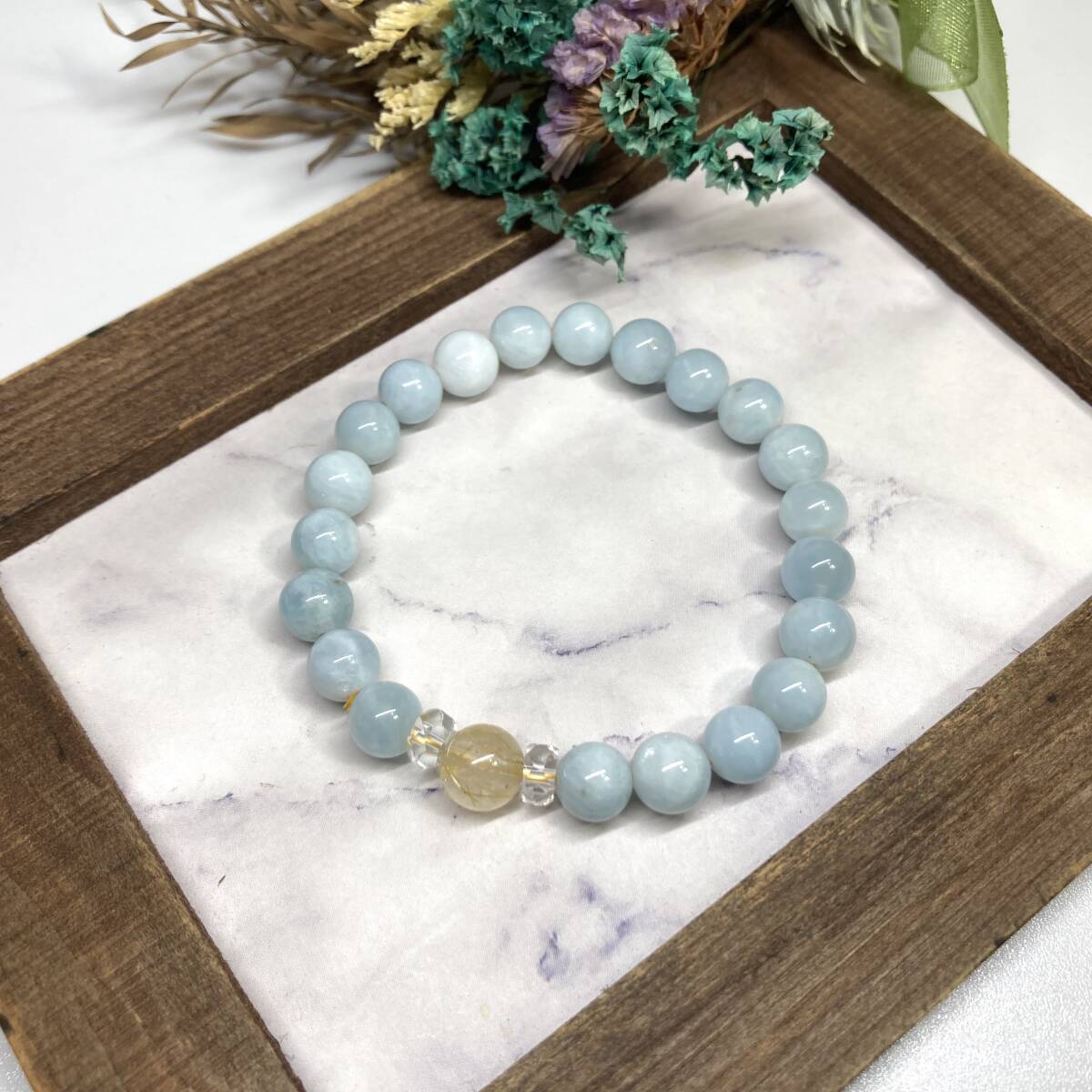 - アクアマリン&ルチルクォーツ ブレスレット パワーストーン レディース 女性 金運 仕事運 開運 天然石ブレス