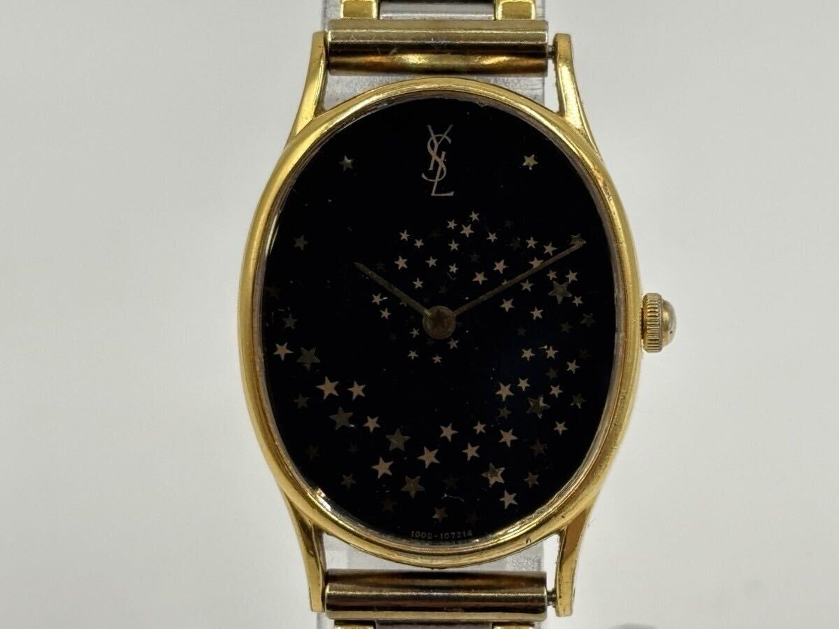 > H2509294011 YVES SAINT LAURENT イヴ サンローラン レディース腕時計 4-106385S 黒文字盤 クオーツ 2針 稼働 電池交換済み 現状品 中古