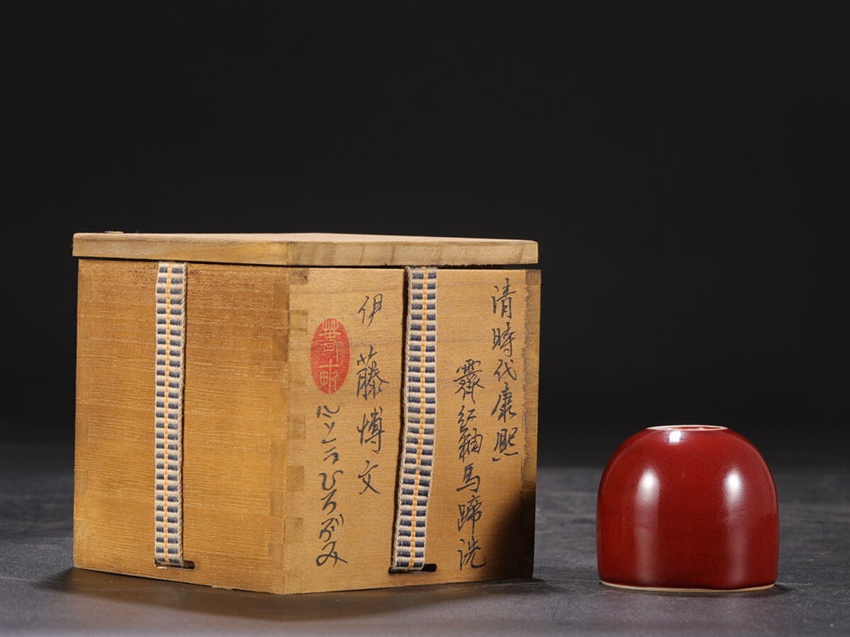 - 「清 康熙年製 陶磁器 霽紅釉 馬蹄洗」染付 置物 擺件 古賞物 中国古美術 旧蔵出