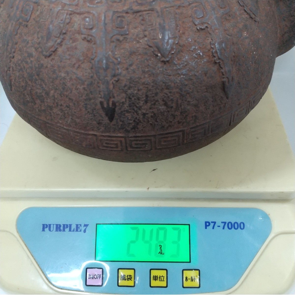 - ◎古美名品◎龍文堂 大國寿郎造 饕餮文 宝珠形 鉄瓶 龍文班紫銅蓋 即発送