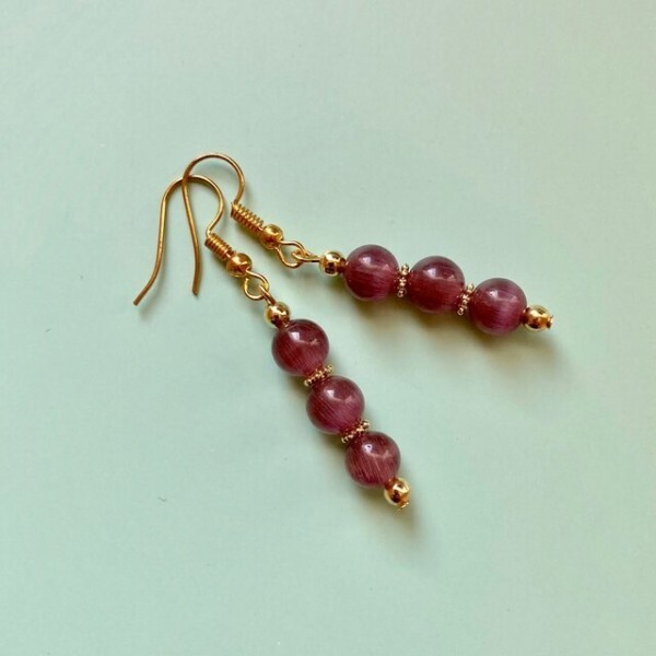 > キャッツアイ ピアス(パープル) フックピアス 8mm (シルバー) イヤリング、樹脂フック変更可 樹脂ピアス シンプル ハンドメイド