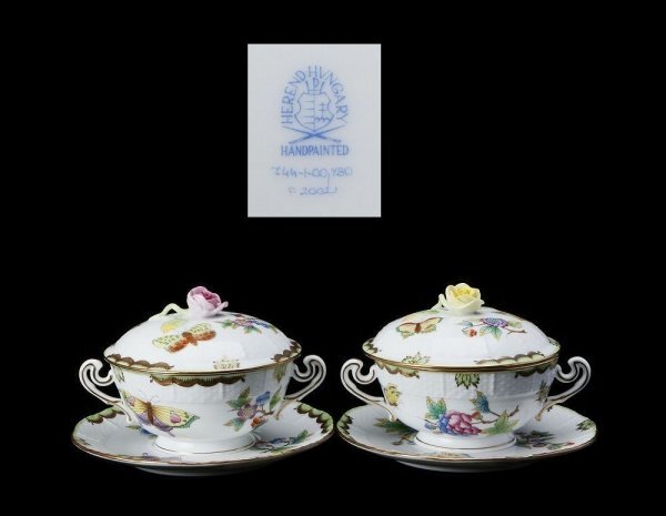 - ■HEREND ヴィクトリア 蓋付 スープカップ&ソーサー 2客■