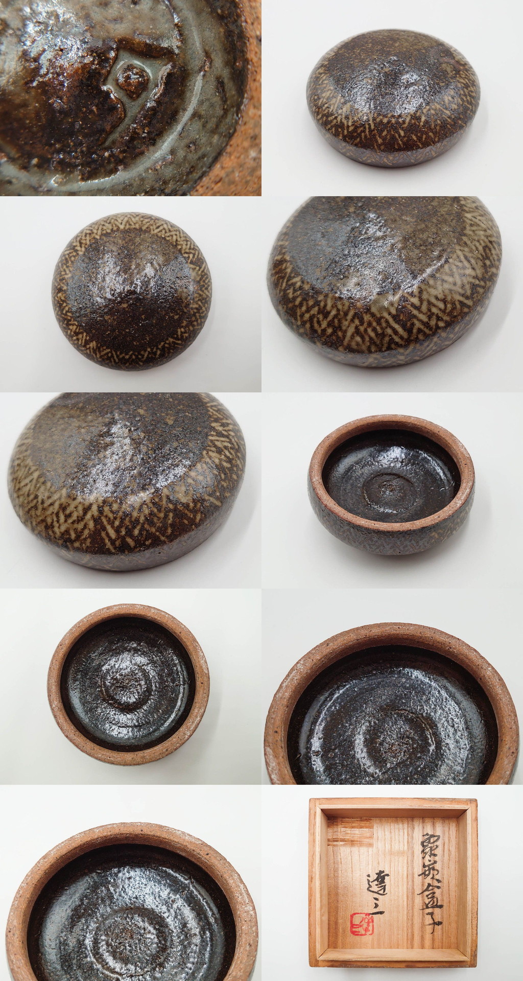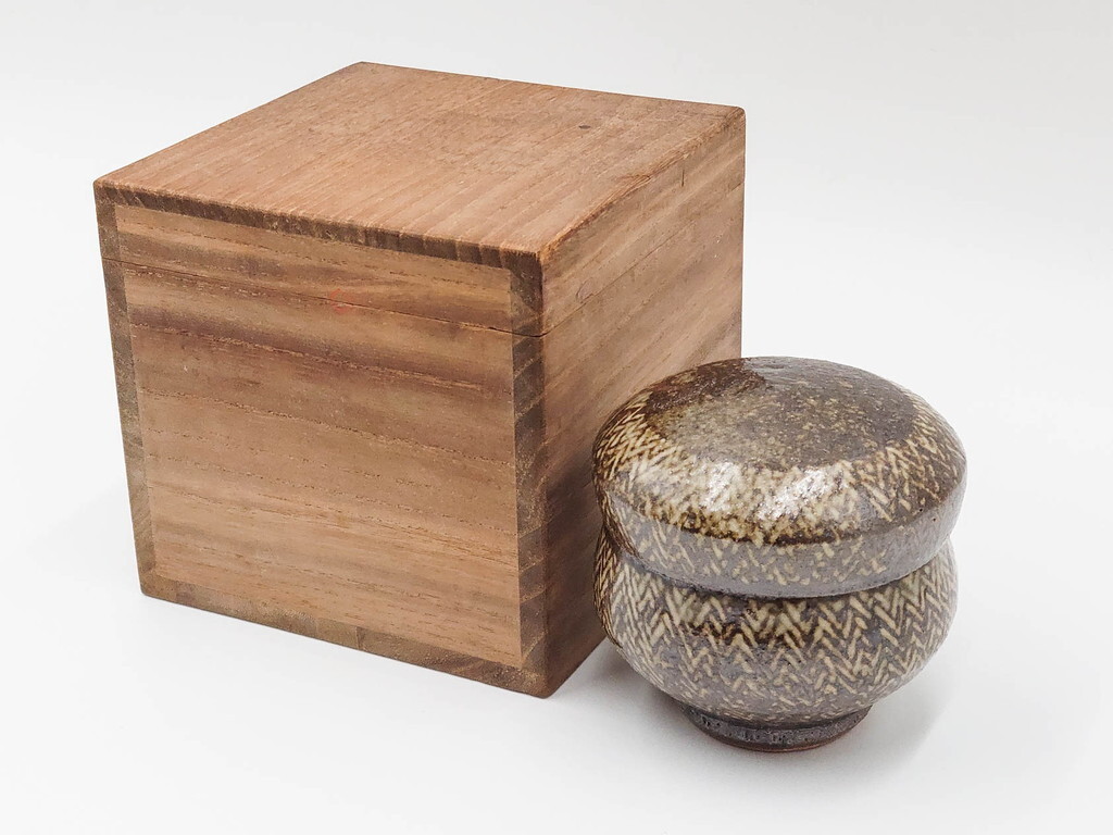 - R-084490 人間国宝 島岡達三 益子焼 象嵌 2.8寸 盒子(蓋物、蓋付き器、香合、菓子鉢、茶道具、和食器、共箱付、二寸八分)