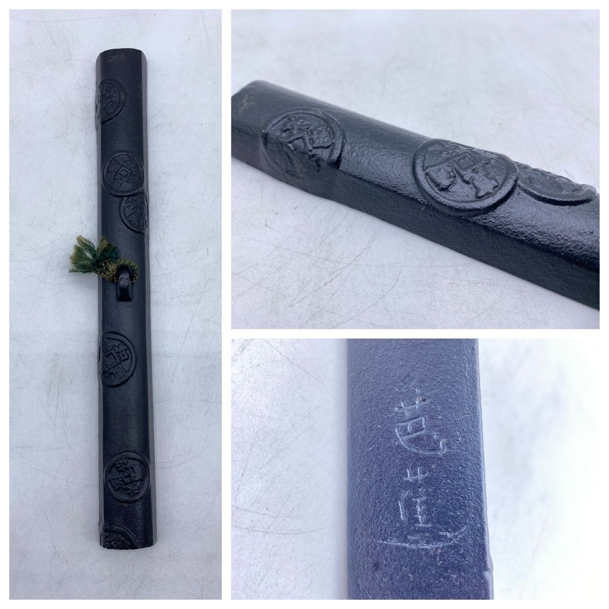 - 【 文鎮 書道 松尾芭蕉 「五月雨や降り残してや光堂」】ペーパーウエイト 芭蕉 句 和同開珎 寛永通宝 天祐通宝 書道具 文鎮(13391)