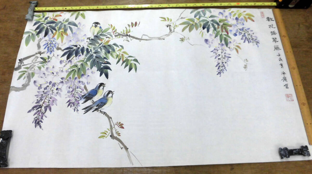- まくり 色絵・花鳥図 紙本 肉筆 南画