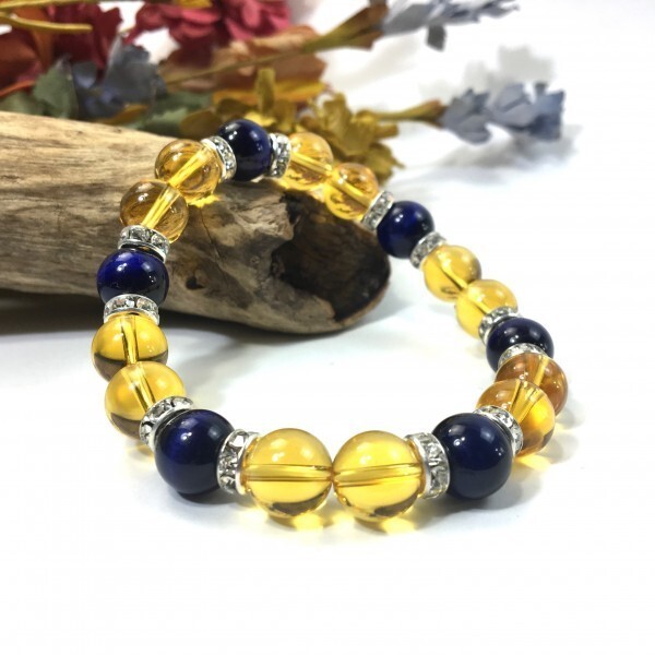 > シトリン×ブルータイガーアイ パワーストーン ブレスレット 天然石ブレス 10mm (シルバー) メンズ・レディース 繁栄 富 幸福