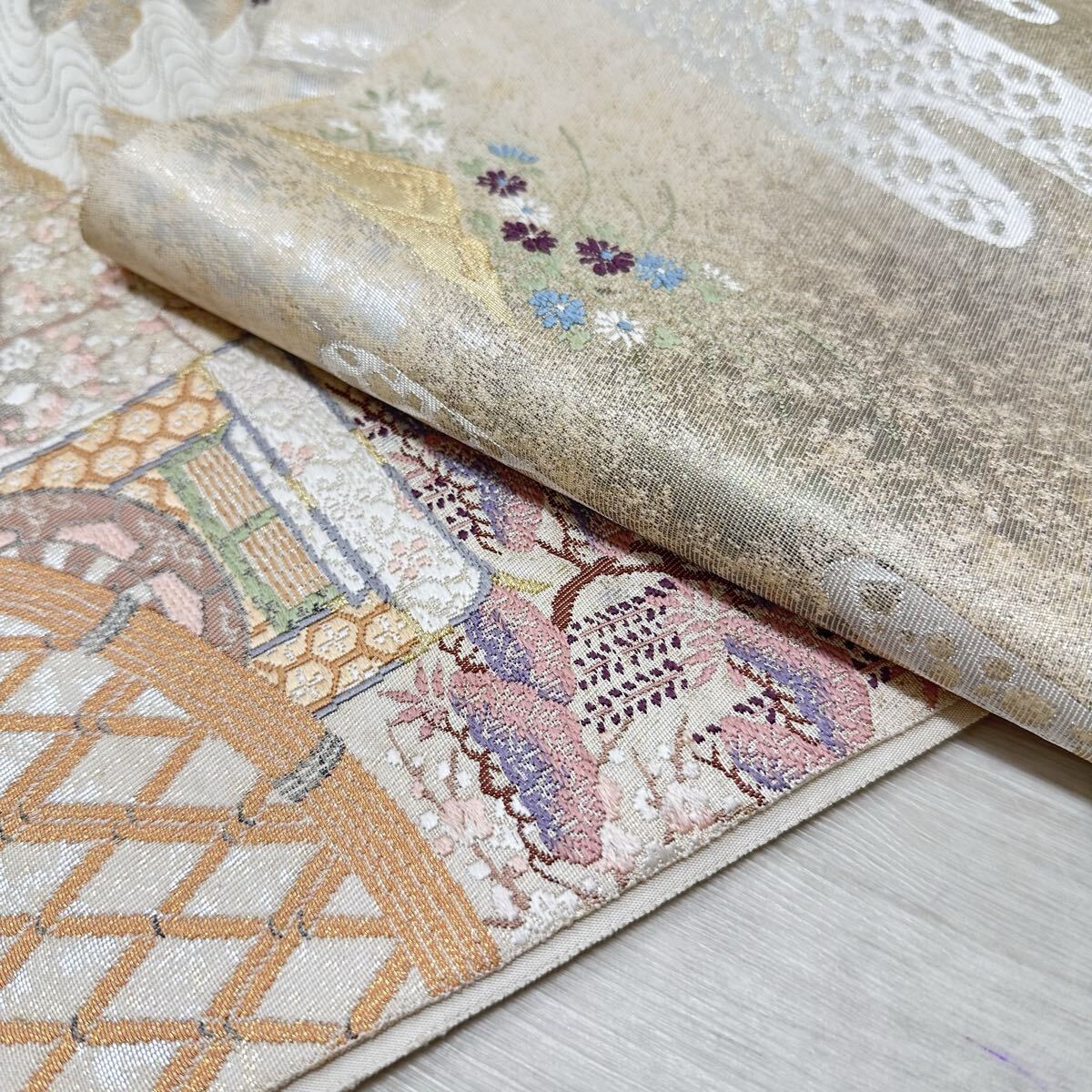 > 袋帯 金彩 美しい織出し 細かな織 正絹 着物 W-4487