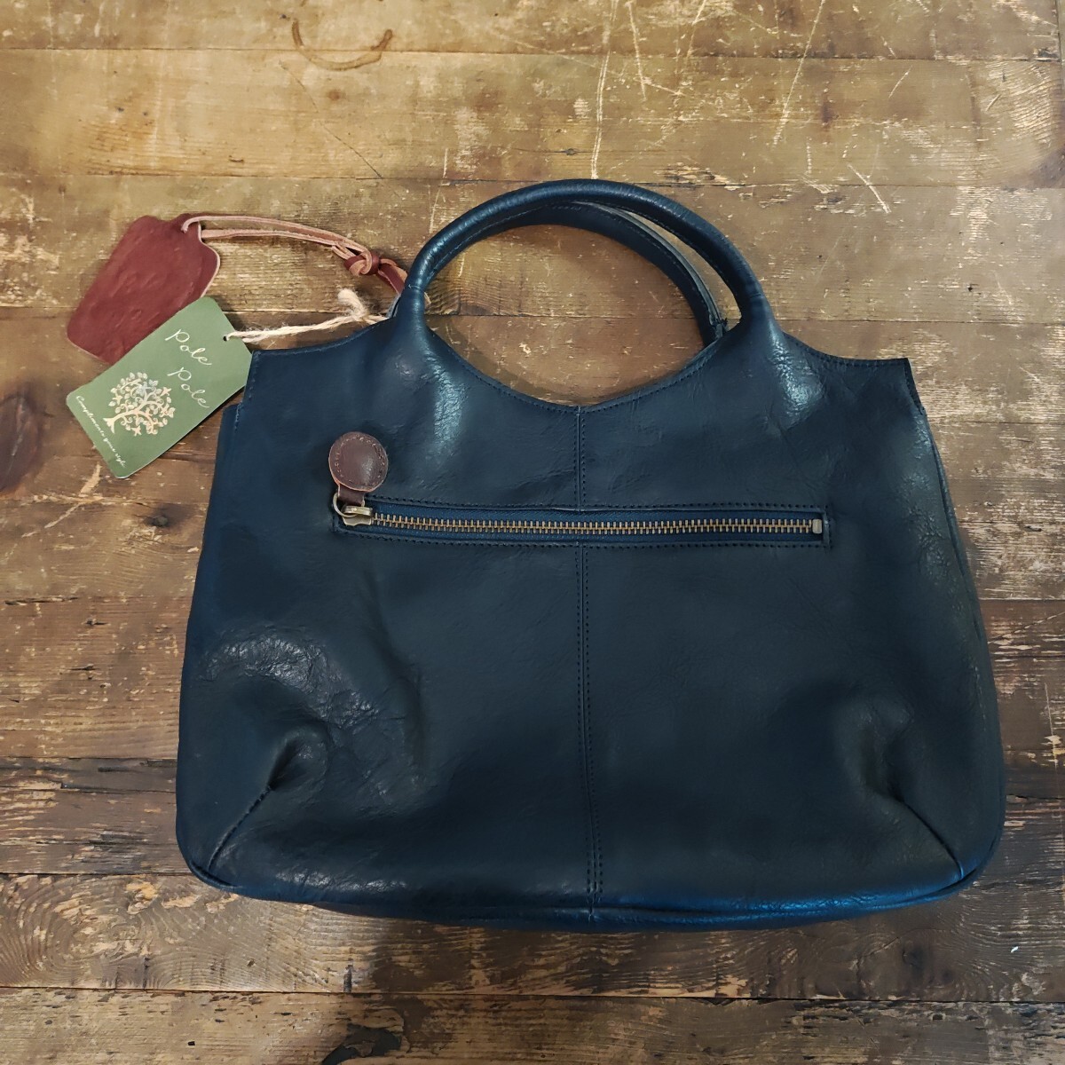 - 93043 日本古風堂 【未使タグ付き】ポレポレ ショルダーバッグ 姫路レザー NAVY 牛革 日本製