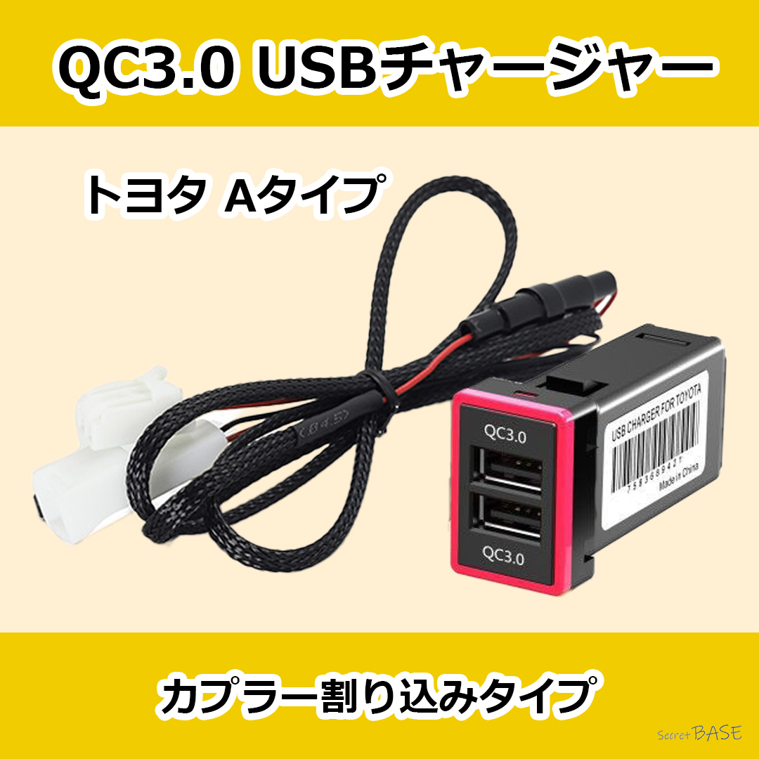 - QC3.0トヨタ スイッチホール対応 Aタイプ USBポート カーチャージャー 赤 レッド 2ポート DC12V 24V スマホ充電器