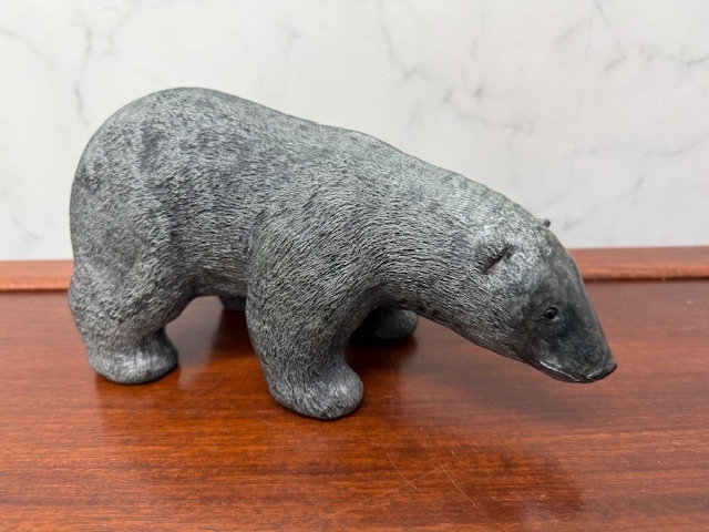 - 石彫 石製 熊 北極熊 ホッキョクグマ オブジェ 置物 サイン有 重量約1.6kg