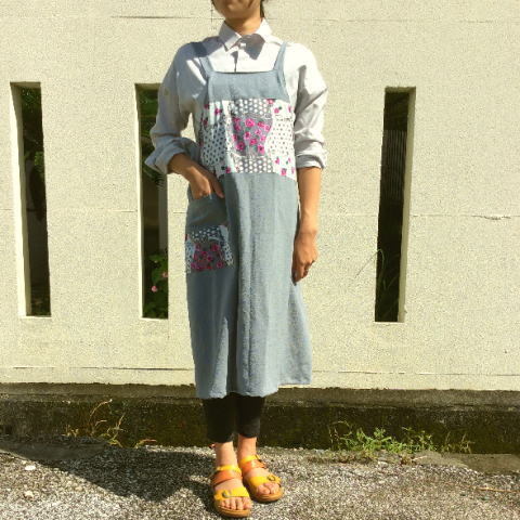 - 【理由あり】8900円スイス製花柄プリント手作りサロンエプロン