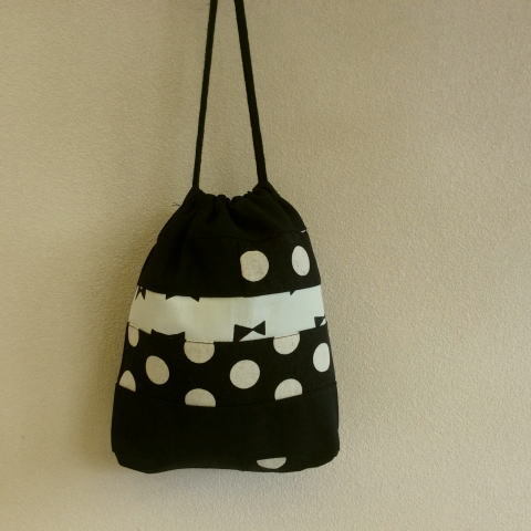 - 【入学、入園!】450円黒とドットパッチワーク巾着袋 【手作り小物】