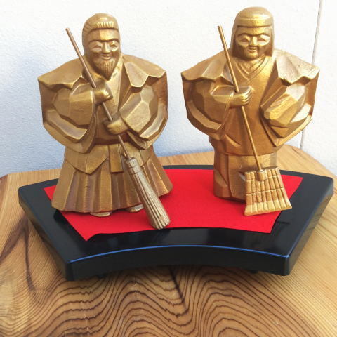 - 【美術工芸】2800円新品 禅龍作【高砂 】翁と媼縁起鋳物立像【中古品】