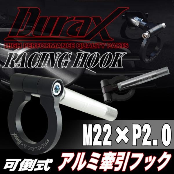 > DURAX正規品 ブラック 黒 けん引 フック 汎用 牽引フック トーイングフック M22×P2.0 可倒式 脱着式 折りたたみ式 軽量 ドレスアップ
