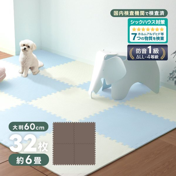 - ジョイントマット 32枚セット ブラウン 大判 60cm 6畳 床暖房対応 防音 防水 カーペット ラグ ノンホルマリン ベビーマット フロアマット
