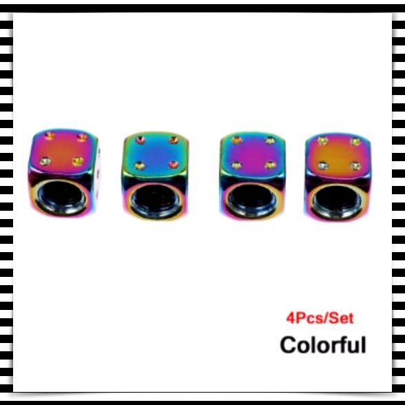 - 4個 エアバルブキャップ タイヤバルブ エアーバルブ サイコロ ダイス チタンカラー タイヤ ホイール おしゃれ エアダスト パーツ 汎用