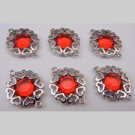 - 即決/繋ぎビーズ/枠付/ラウンド/レッド/24*18mm/10個/N1