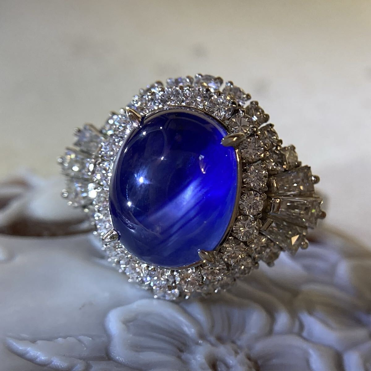 > 三越ブランド 非加熱スリランカ産ブルーサファイア クラスターリング 4.68ct ダイヤモンド1.15ct 指輪 リング