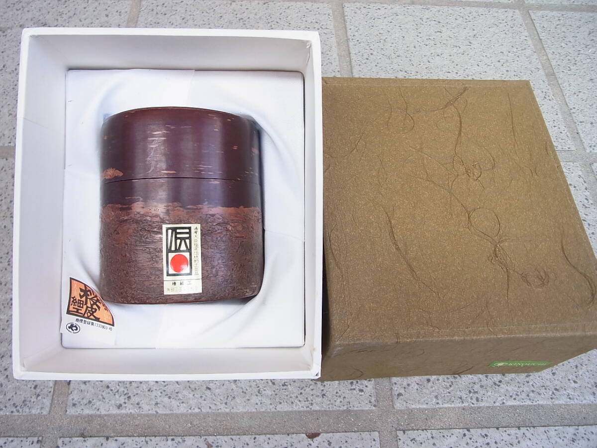 - 樺細工☆ 伝統工芸 煎茶 茶道 棗 葉茶器 茶入 箱入り 未使用