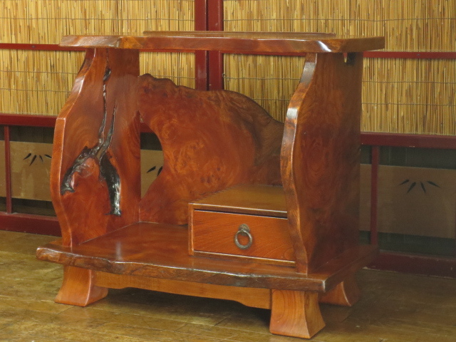 - 逸品 深谷木工 天然木 総欅 ケヤキ 無垢材 玉杢 民芸 飾り棚/煎茶棚/茶棚/置床/箪笥/小箪笥/手元箪笥/茶道具/抽斗/和家具